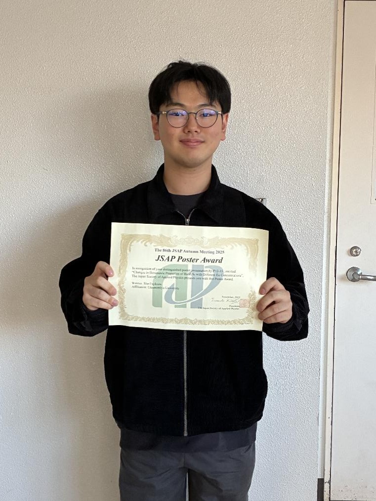 第86回応用物理学会秋季学術講演会にてB4藤倉が受賞しました。